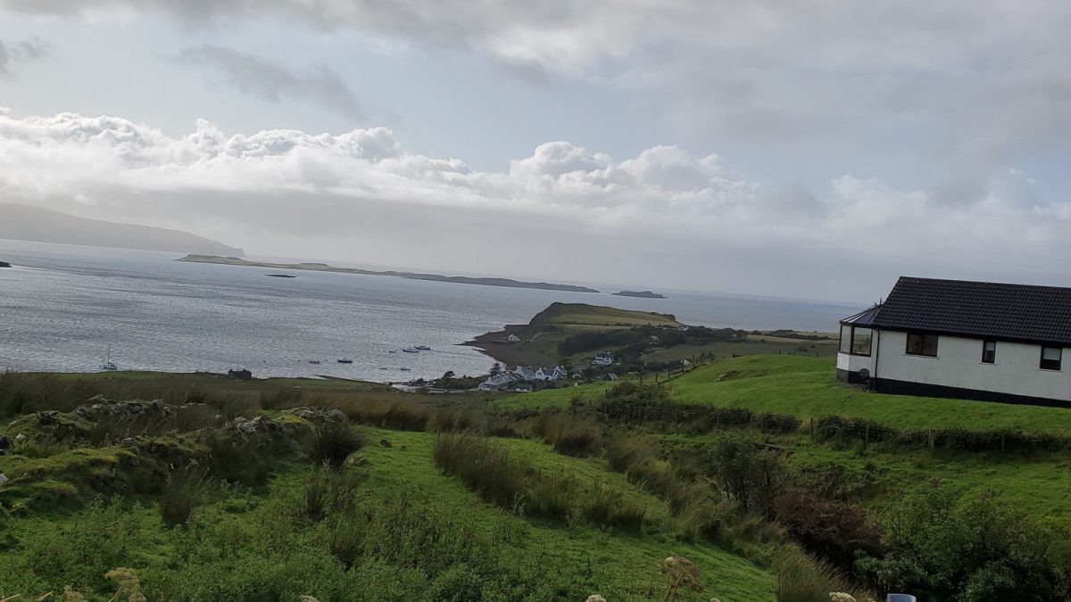 Geary sits on the northeastern edge of Waternish, facing out across Loch Snizort and the Sound of Raasay. On clear days, the view is nothing short of majestic: the jagged outline of the Trotternish Ridge to the east, the distant hills of Raasay and the mainland beyond, and the ever-changing dance of light on the water. It’s a place where the sky feels impossibly wide and the silence is broken only by seabirds and the occasional bleat of sheep.
