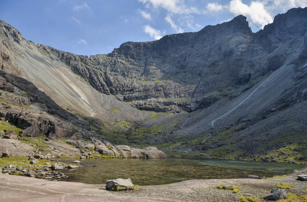 • Coire Lagan itself is a dramatic corrie with a small lochan (lake) nestled beneath towering cliffs.