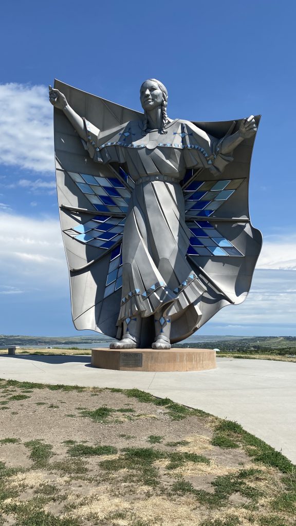 When I visited, the wind was strong and the sky was wide. Standing beneath her, I felt smallābut not insignificant. Saydie and I had just come from the Badlands, still buzzing from bison sightings and fossil hunts, and this stop brought a quiet reverence to our journey. Saydie asked if the statue was a superhero. I said yesājust not the kind with a cape.
